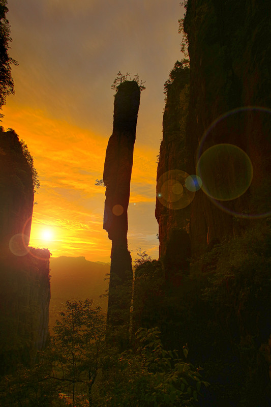 一炷香是地球上稀有的单体三叠系灰岩柱,高度为150米,柱体底部直径6米,最小直径只有4米,此地的岩石的抗压强度是800千克每立方厘米,风吹他不倒,雨打他不动,傲立群峰之中千万年,守护着这片神秘的土地,实属罕有。他近观犹如男根,展示着他威武的雄姿,俨然成了大峡谷中的镇谷之宝。相传,这根石柱是天神送给当地百姓的一根难香,如遇灾难将他点燃,天神看到寥寥青烟,就会下凡来救苦救难,所以当地百姓称它为“难香”,这难香又长又细,晴空万里时,一朵白云叠在峰顶,远远看去就像天上的香火,宛若仙境;阴雨天气时,升起的一层薄雾,就像一缕青纱,将它打扮得若隐若现,妩媚动人。从地质学上讲,由于长江水系、清江水系长期交错的影响,不断地侵蚀,不断地冲刷,才形成如今陡峭的石柱,由于保存极度困难,所以地球上类似细长的石柱并不多见,而最长最大的莫过于此。